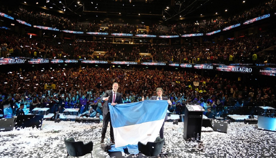 El espectáculo, en el que interpretaron temas de artistas conocidos, fue previo a la presentación de un libro escrito por Milei titulado ‘La Construcción del Milagro’, en el Movistar Arena, un conocido espacio de la capital argentina que acoge a importantes artistas locales e internacionales.