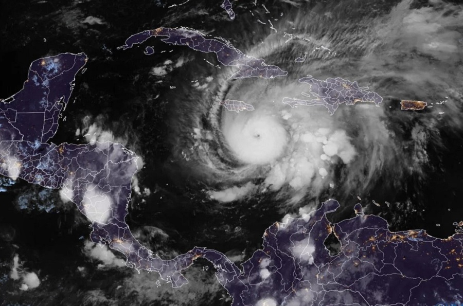 El ojo de la tormenta se encontraba esta mañana a unos 180 kilómetros al sur de Kingston (Jamaica) y a unos 445 kilómetros al sur-suroeste de Guantánamo (Cuba), con vientos sostenidos de 220 kilómetros por hora, ráfagas superiores y vientos huracanados que se extienden hasta 35 kilómetros desde el centro.