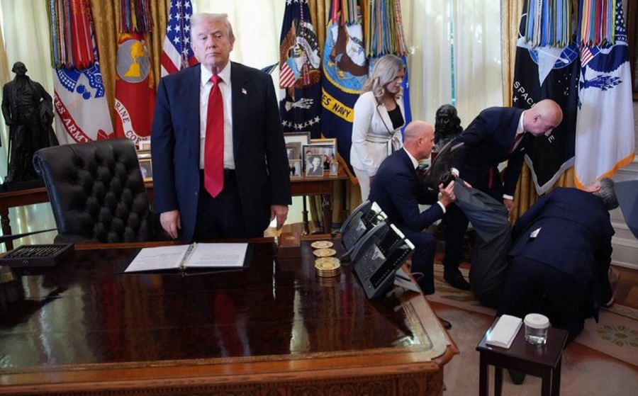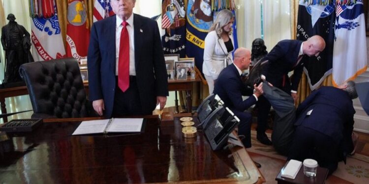 Trump se levantó de su asiento y varias personas corrieron a socorrer al afectado y la Casa Blanca ordenó retirar a la prensa del Despacho Oval.