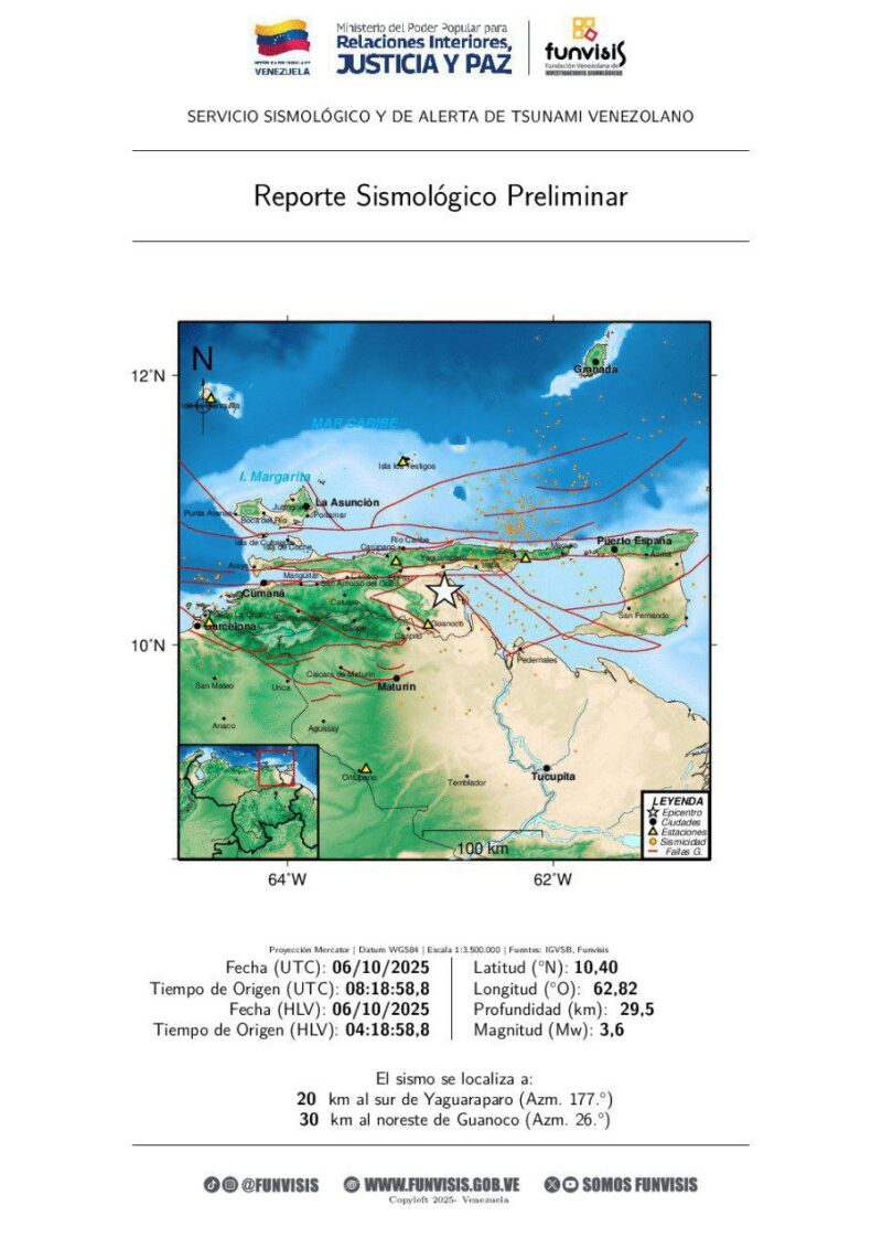 ` Funvisis registra cinco sismos en varios estados de Venezuela este lunes 6 de octubre - Monitoreamos